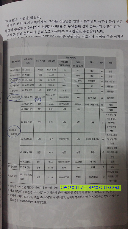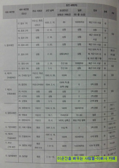 다음카페<이순신을 배우는 사람들>'이배사'의 회원이신 해군사관학교 제장명 교수가 직접 만든 자료입니다.(출처=이순신 파워인맥,제장명 지음)