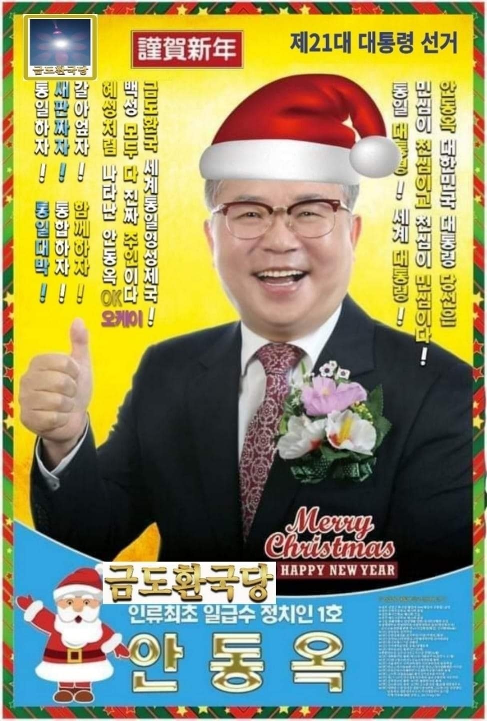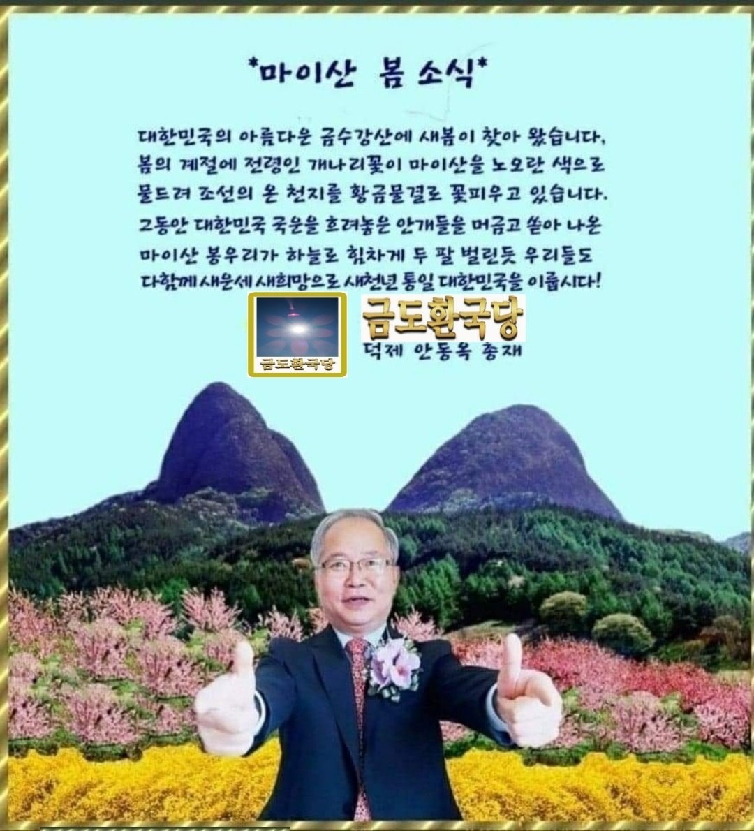 "대한민국 2022.3.9 차기대통령 제20대 대통령은 현재 언론에 전혀 알려지지 않은, 새로운 인물이 대통령에 당선된다." "그 주인공은 금도환국당(약칭:금당~금도환국) 창준위 총재 덕제 안동옥입니다."