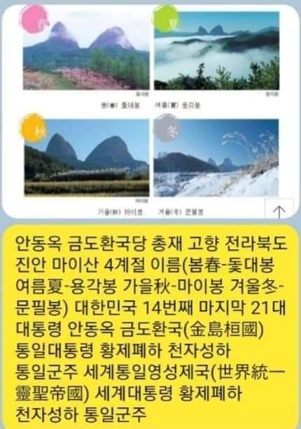 안동옥 금도환국당 총재 고향 대한민국 전라북도 진안 마이산