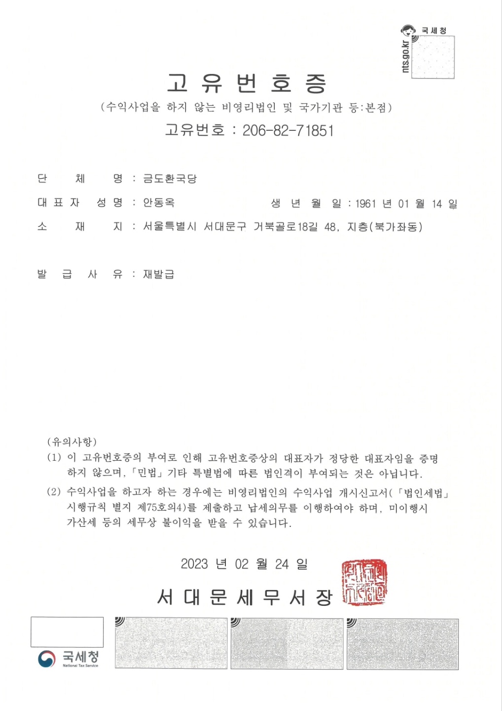 금도환국당 사업자등록증 비영리법인 2021.11.19~2023.02.24 총재 안동옥 대한민국 차기대통령은 천심이 민심이고 민심이 천심 작성자안동옥 금도환국金島桓國 통일군주|작성시간24.06.28|조회수33 목록 댓글 0 글자크기 작게가 글자크기 크게가 다음검색 현재 게시글 추가 기능 열기 북마크 공유하기 신고 센터로 신고 댓글 댓글 0 댓글쓰기 답글쓰기 댓글 리스트
