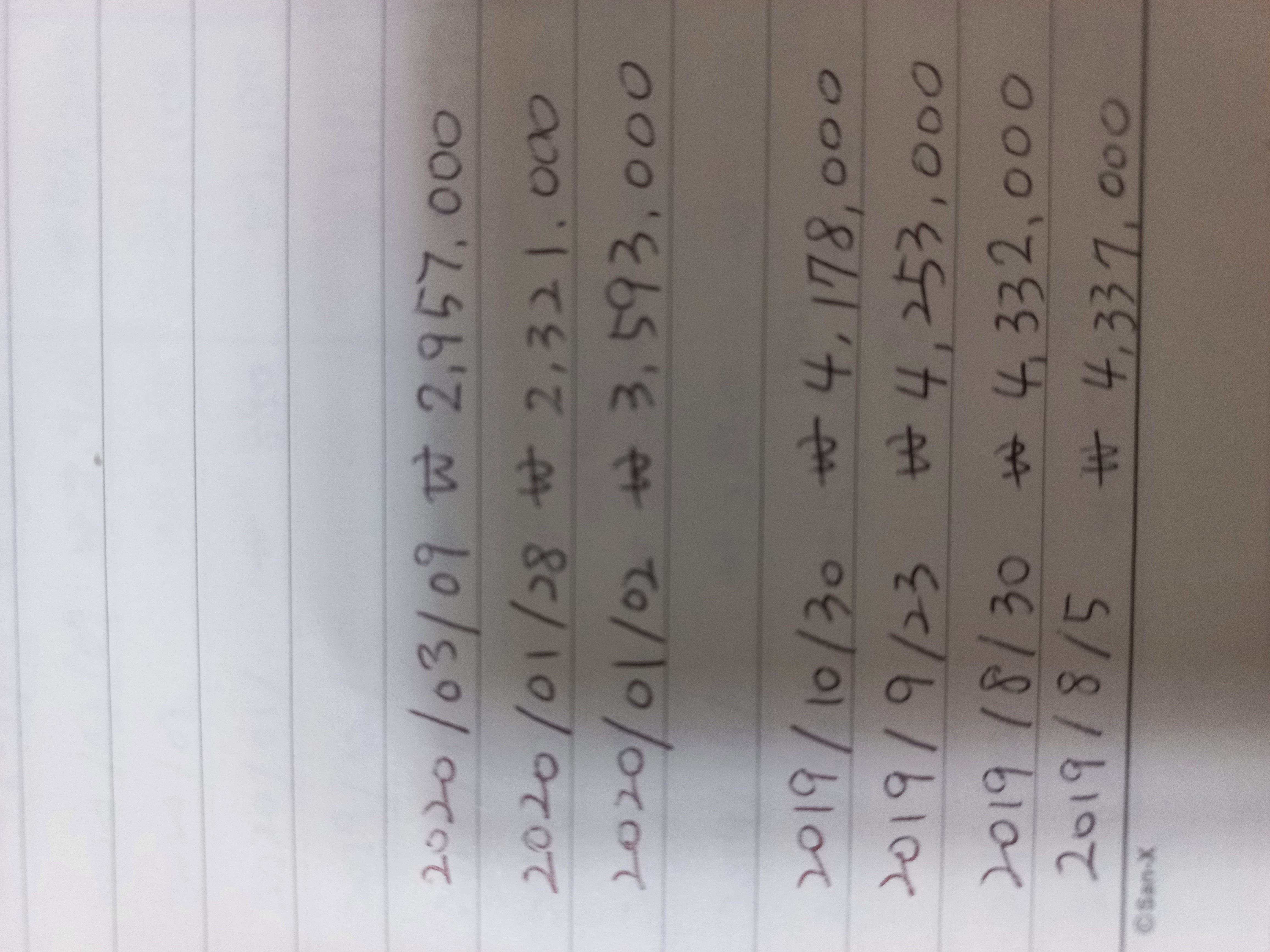 아내가 적은 매달 송금한 한국 돈 금액이다.