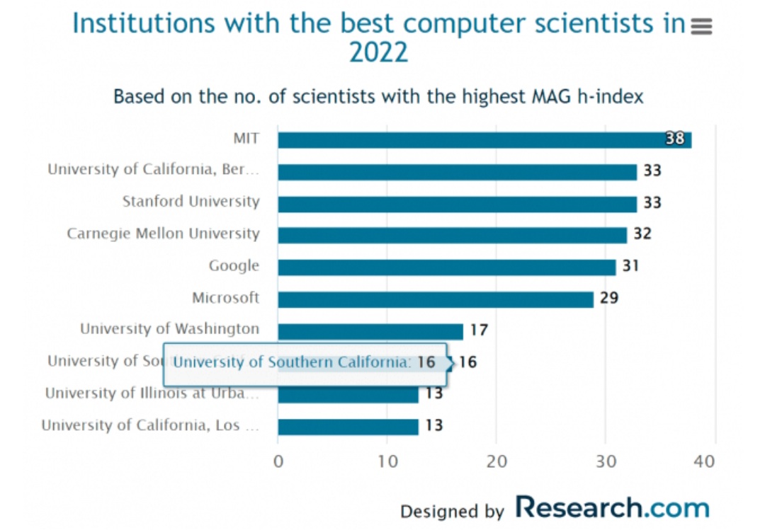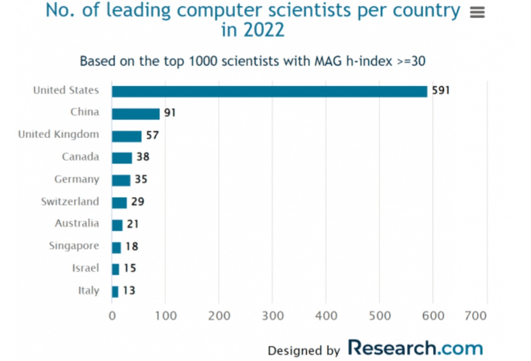 미국 리서치 닷컴은 매년 컴퓨터 관련 학자 9700명을 대상으로 랭킹을 만드는데 한국 과학자의 최고는 1022위 였고