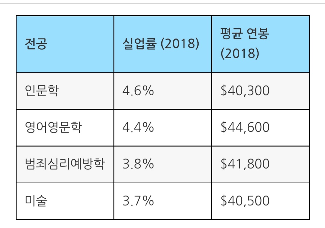 아래는 미국에서 취업이 가장 힘들다는 전공을 소개한다.