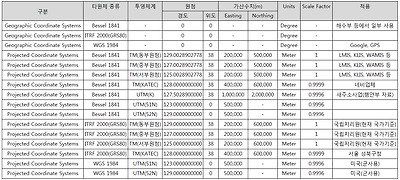 아래의 구분는 지리좌표계와 투영좌표계로 분류됩니다.