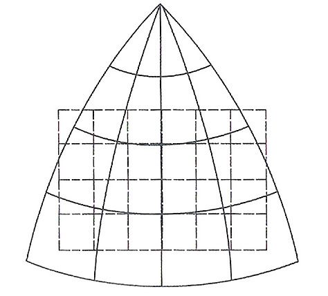 3차원의 지리좌표계를 2차원에 매핑하면 경위도선이 곡선이 아니라 직선으로 표시되는데,
