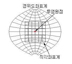정확히 말하면 평면직각좌표계안에서 경위도좌표와 직각좌표가 함께 표기된 그림입니다.
