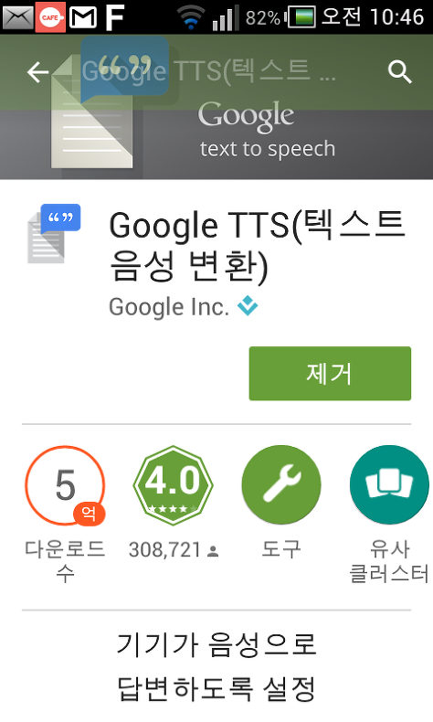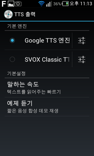 * 보통 "구글 TTS" 나 "SVOX" 앱을 많이 사용하고 있습니다.