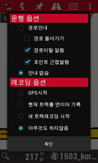 * 메인메뉴 세번째 [경로(Tracks/Routes)] 아이콘