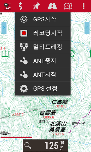 1. GPS시작 : 트랙로깅[트랙기록]은 하지 않지만, GPS를 켜서 자신의 위치를 확인할 수 있습니다.