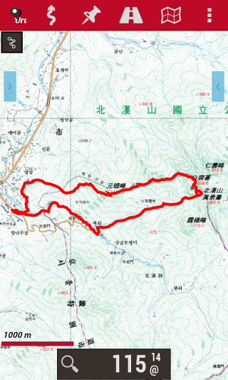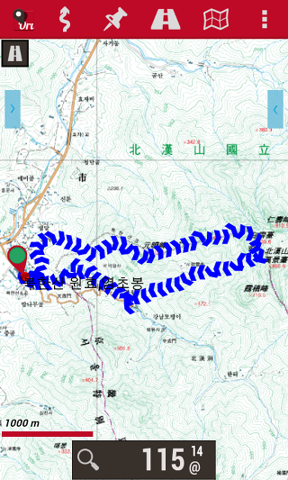 트랙 레코딩을 마친 트랙을 저장한 경로는 오럭스맵에 불러오면 목적지까지 가야할 길인 루트로 맵뷰어에 파란색으로 표시됩니다