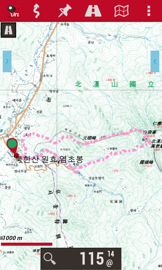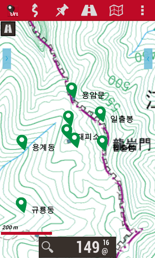 맵 뷰어는 동시에 하나의 [트랙]을 빨간선으로 , 하나의 [루트]를 파란선으로, 다수의 경로를 핑크선으로 처리 합니다.