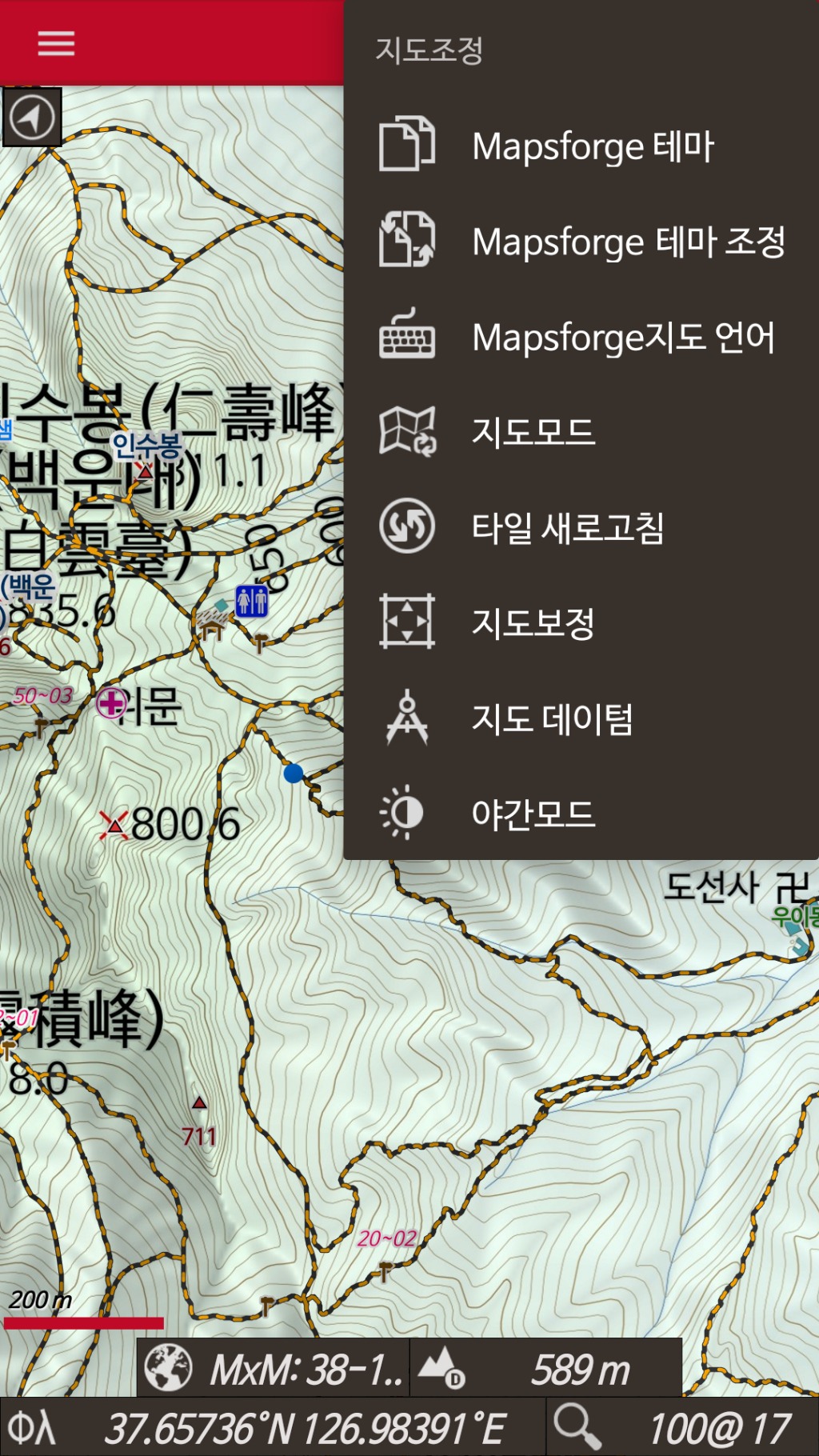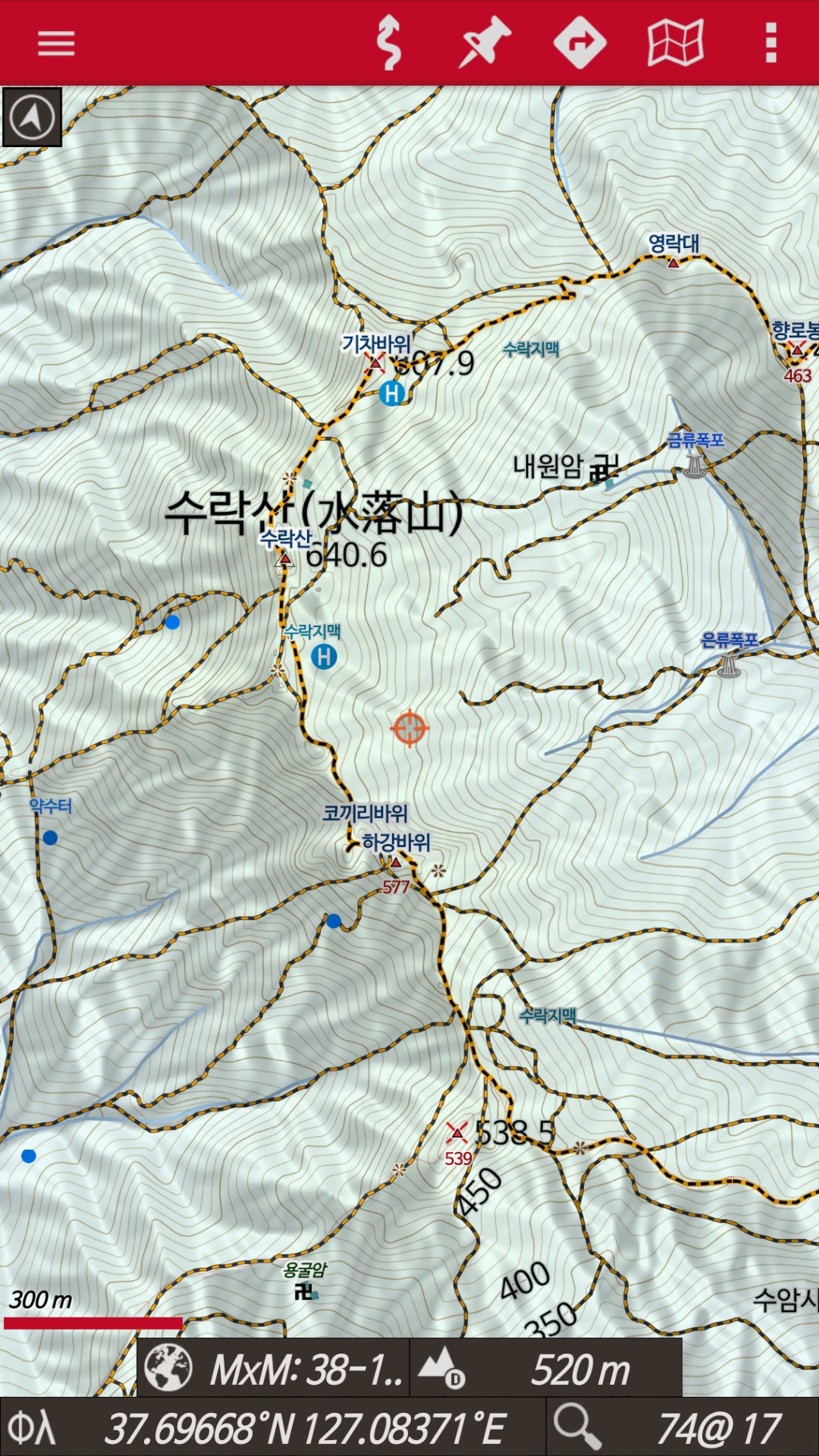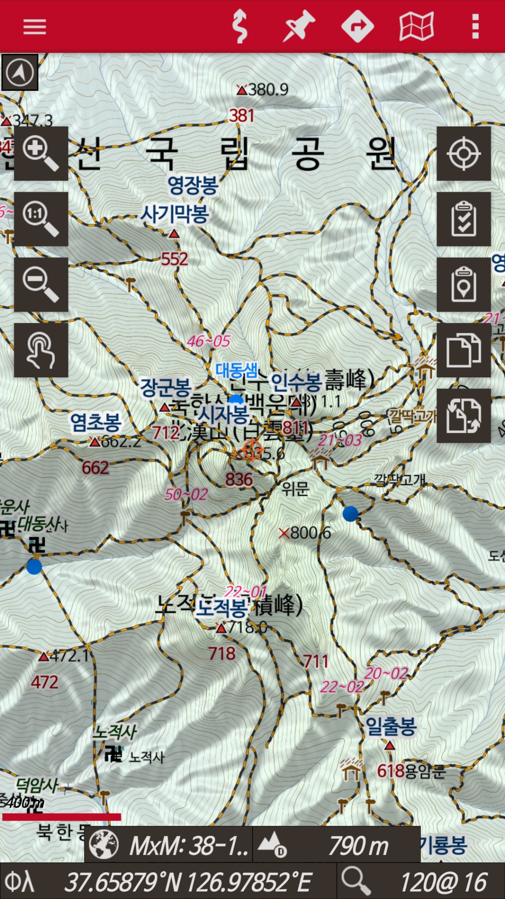 기존 img등산로 지도보다는 월등하게 많은 정보를 가지고있고 선택적으로 볼수도 있고 조금만 노력하면 선 색깔과 두께도 마음대로 조정이됩니다.