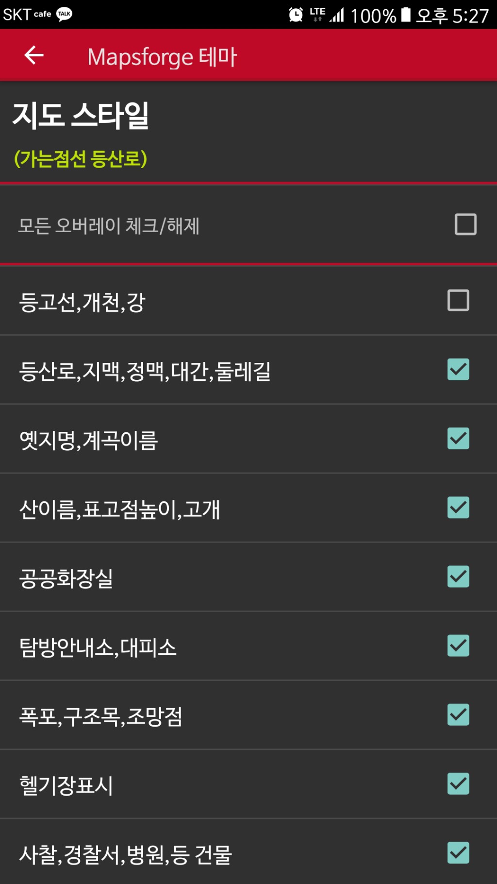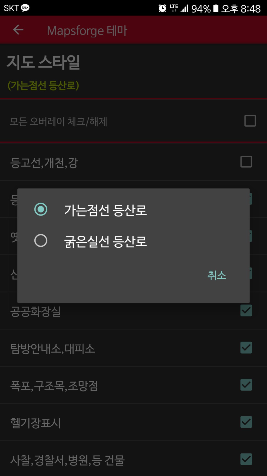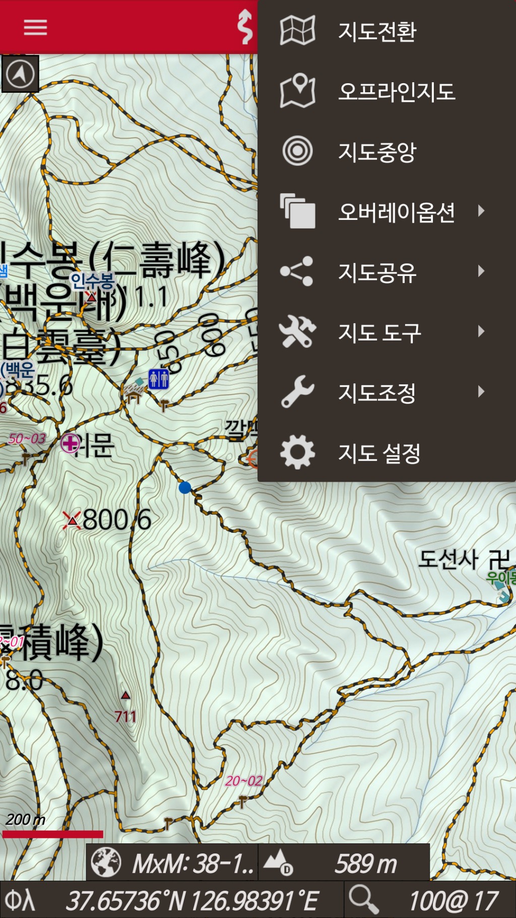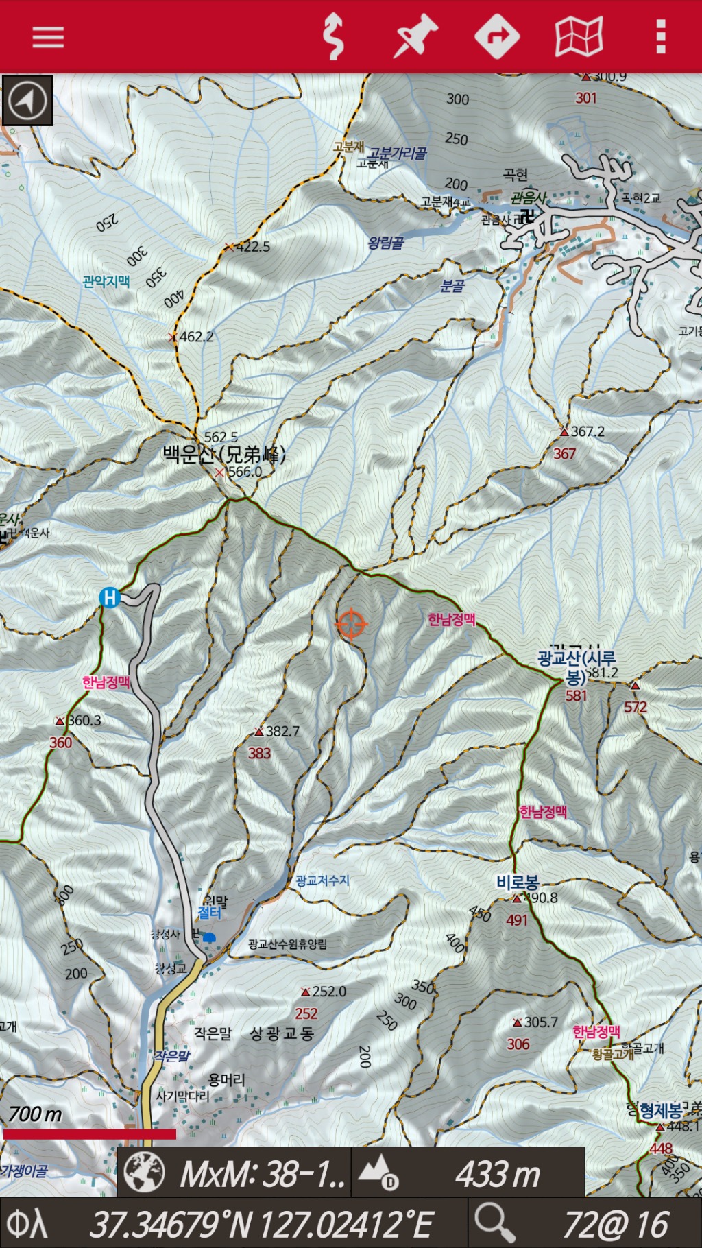 기존 img등산로 지도보다는 월등하게 많은 정보를 가지고있고 선택적으로 볼수도 있고 조금만 노력하면 선 색깔과 두께도 마음대로 조정이됩니다.