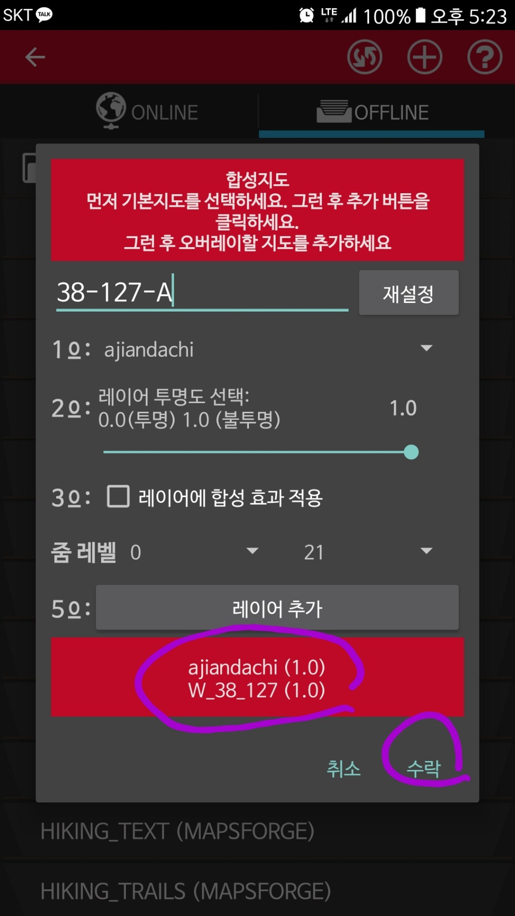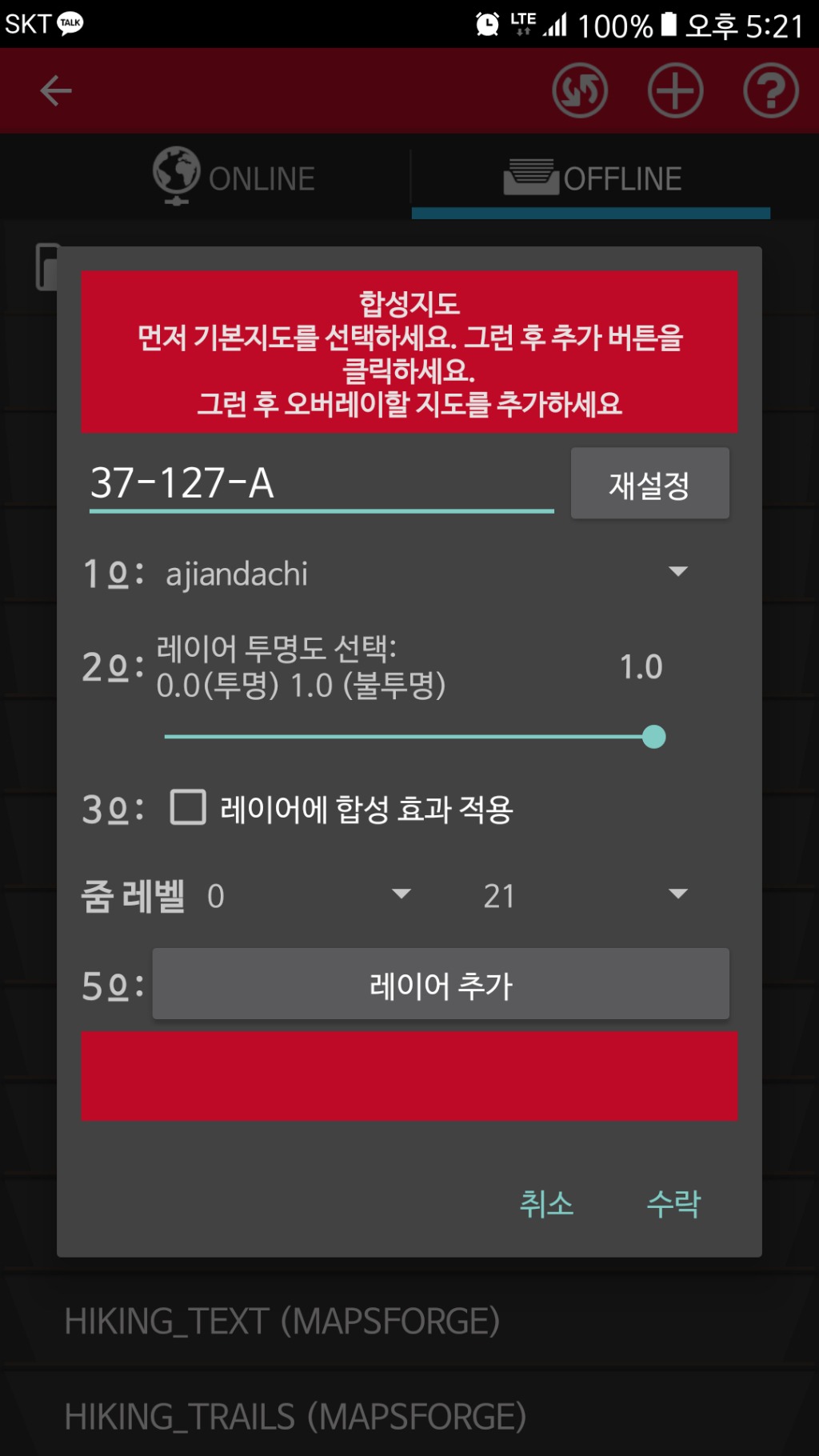 레이어추가하고 다시 1번 눌러서 등산로지도인 ajiandachi.map을 선택하여 레이어추가...