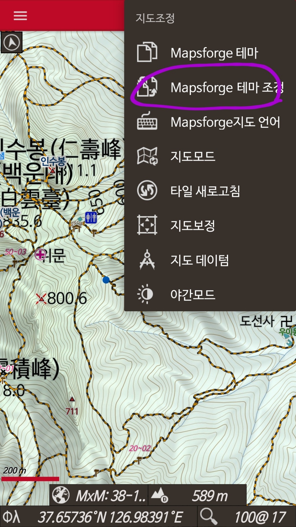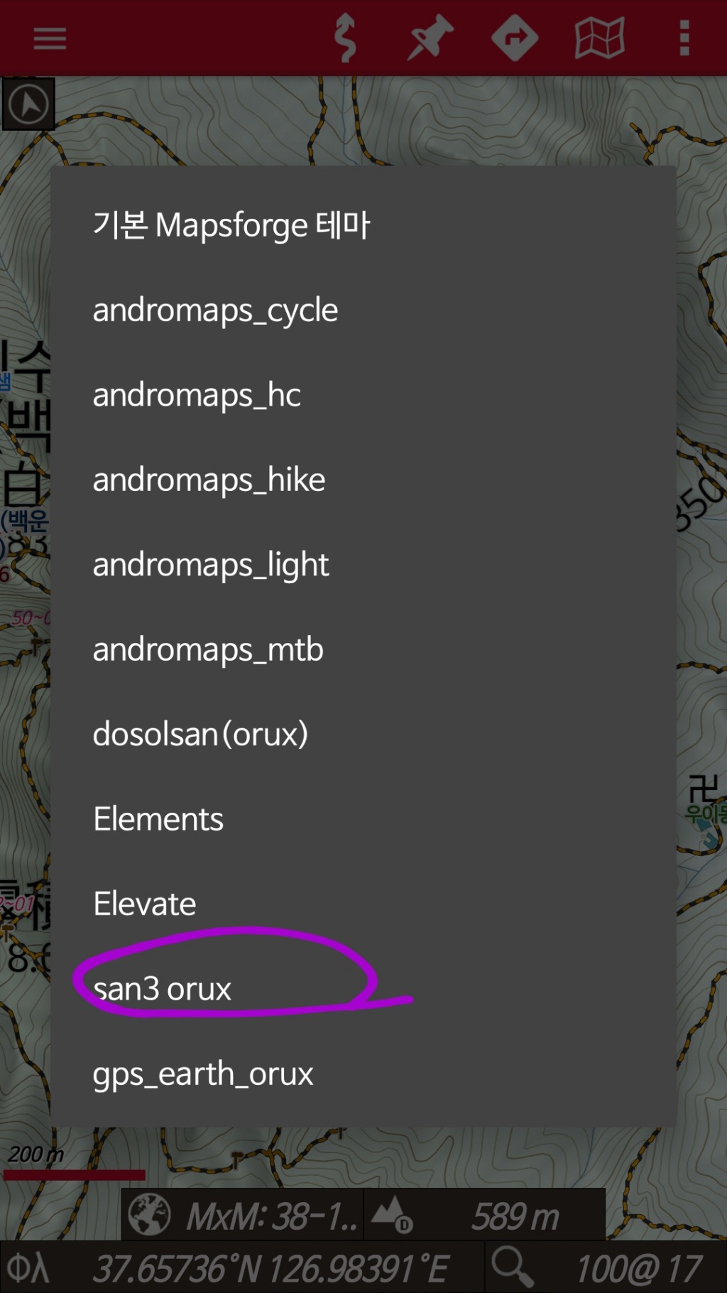 첨부된 테마파일의 압축을풀어서 oruxmaps/mapstyles 폴더에 넣습니다. 압축풀때 서브폴더가 생기면 안에있는 san3 orus 폴더만 넣으셔야합니다.