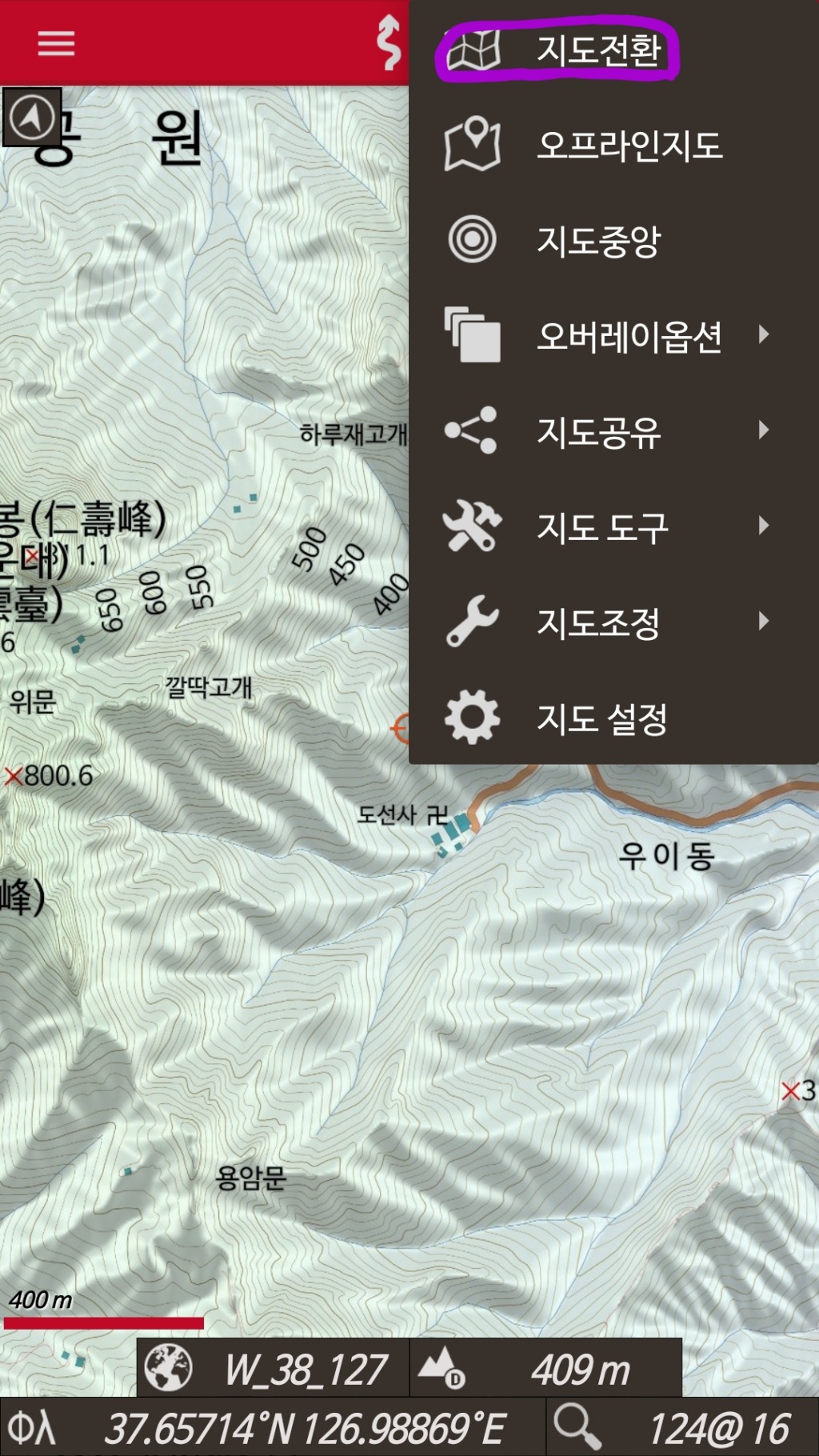온맵위에 쓸때는 등고선,개천 부분은 비활성으로 하세요
