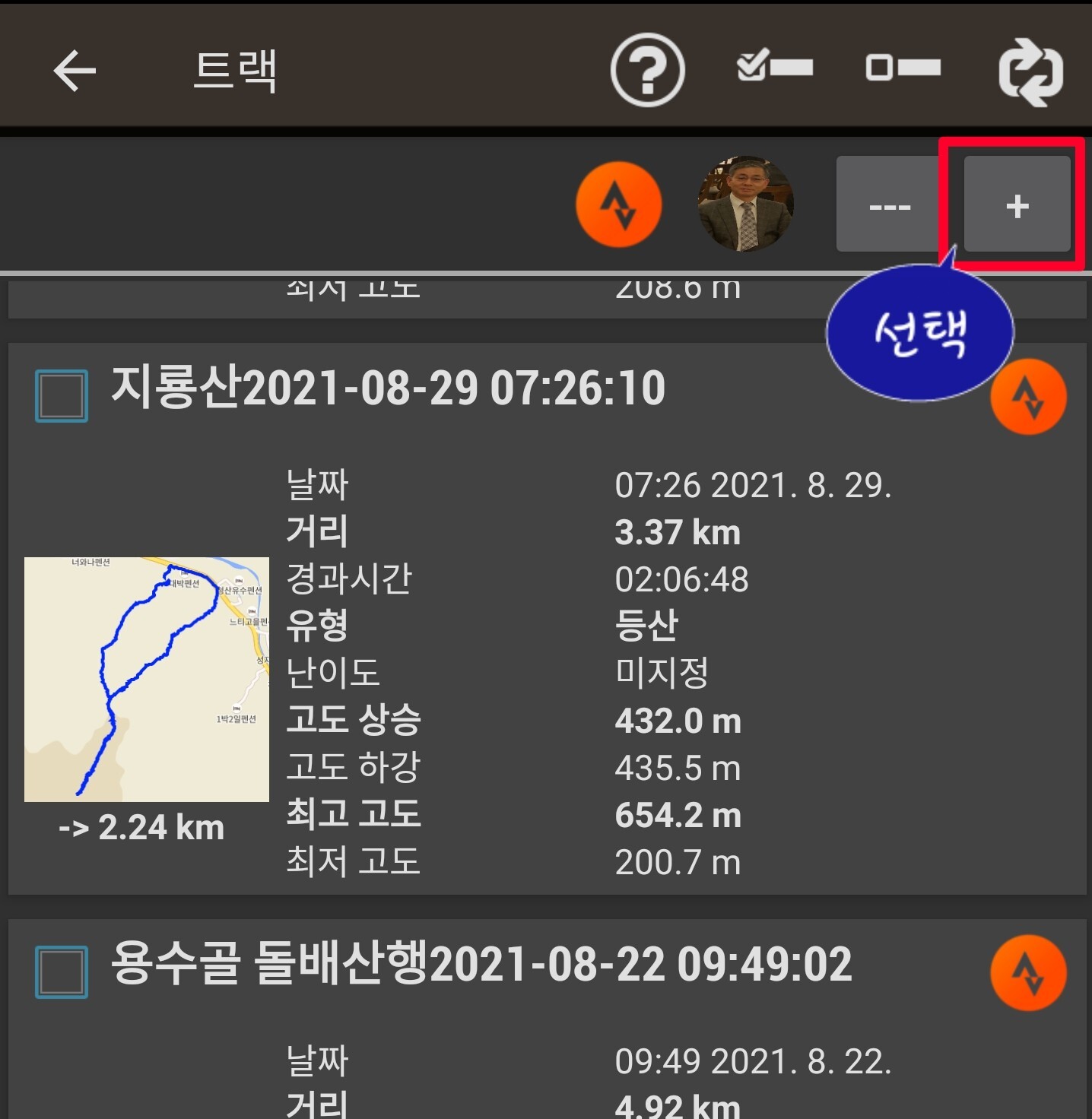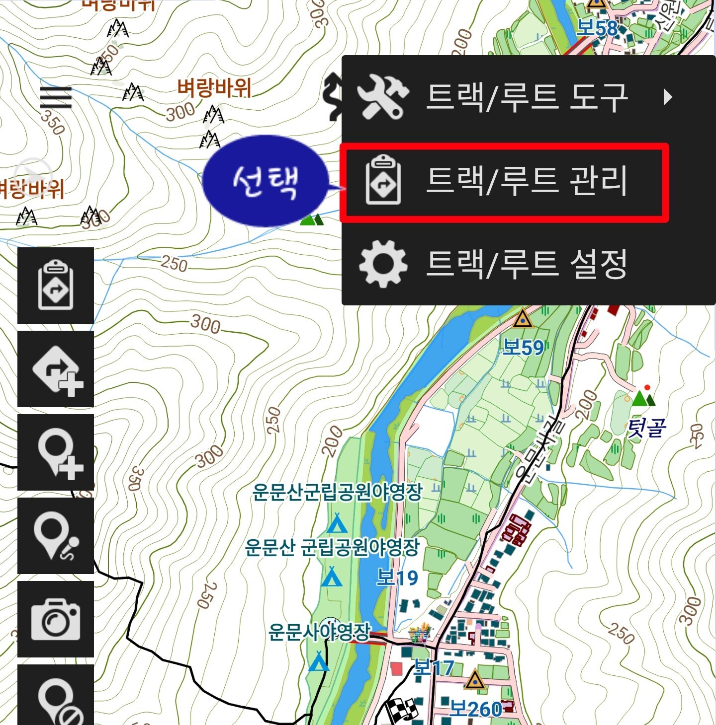 ▼ 상단 아이콘에서 트랙/경로 아이콘 선택