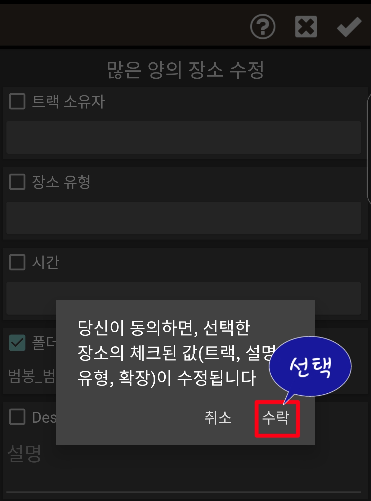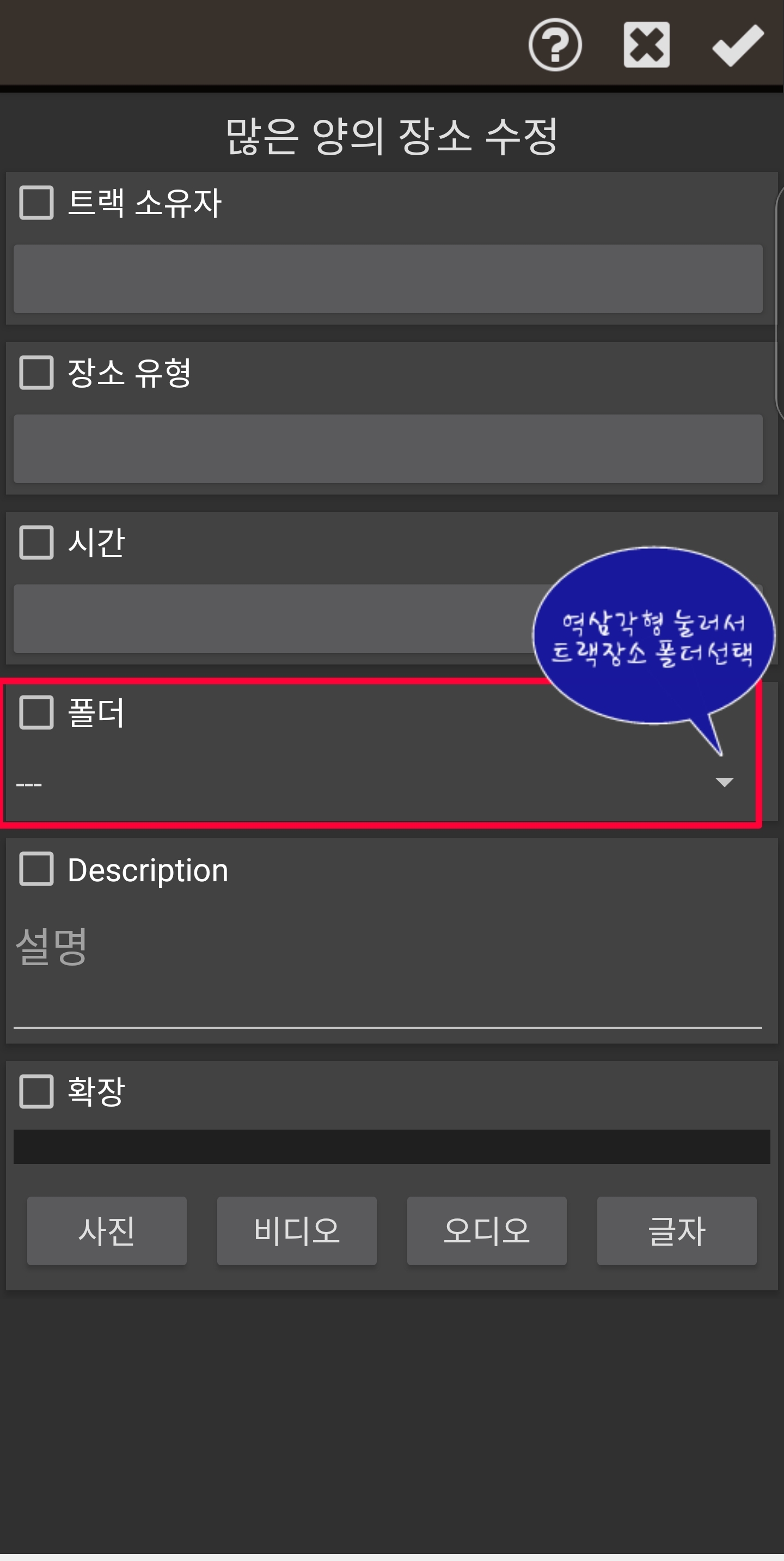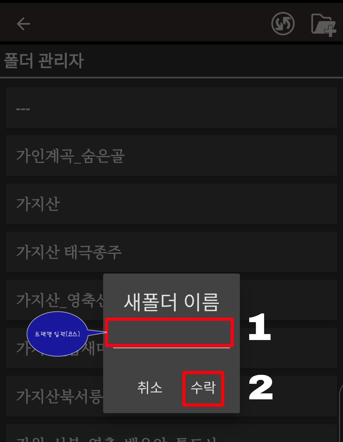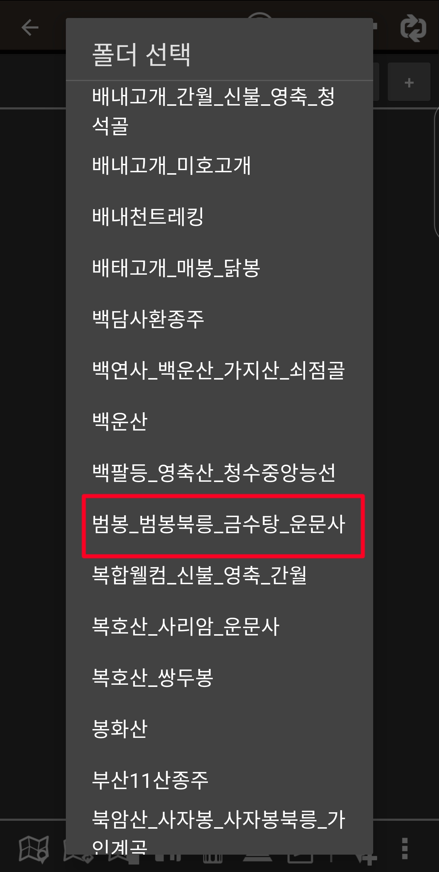 ▼ 나타나는 화면에서 트랙/장소 폴더 선택