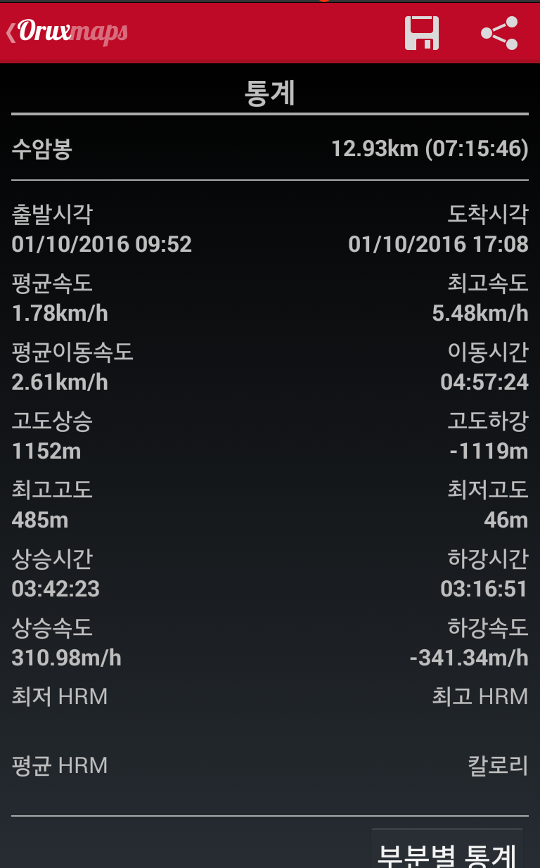 5. 산행시간 : 7시간 15분