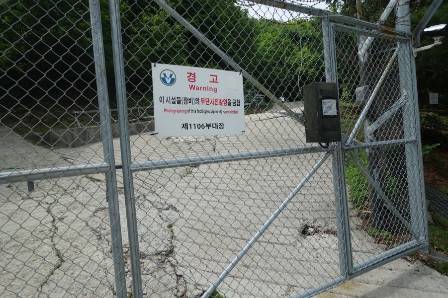 10;35 군부대 정문으로 이어진 도로입니다.도로 건너 또 철조망을 따릅니다.