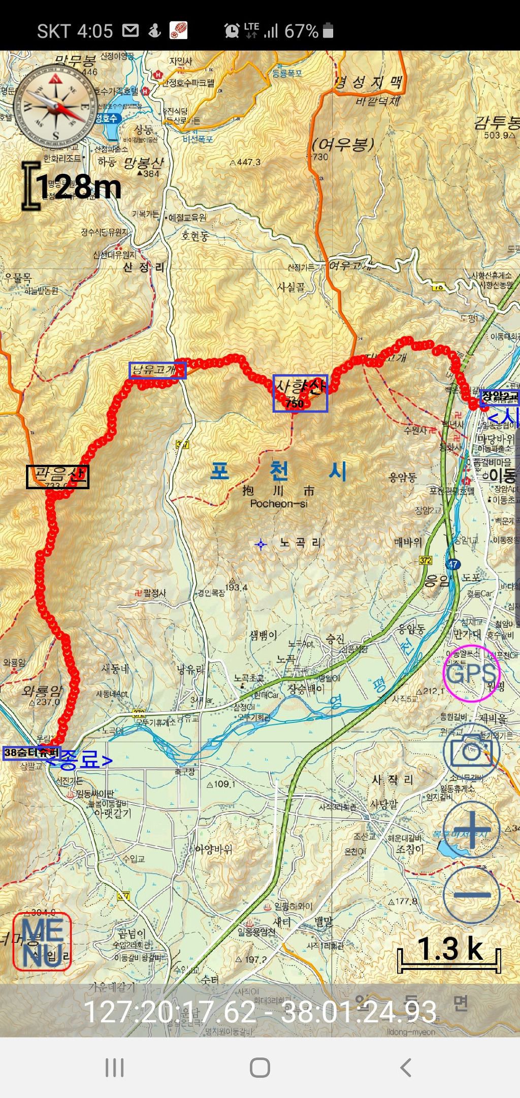 오록스맵 사향산 관음산 트랙입니다