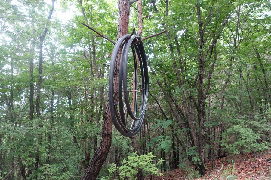 낭유고개에는 유사시 도로 차폐 시설이 있다. 아스팔트도로 차폐 시설이 시작되기 직전 낮아지는 지점에서 우측 관음산 입구 등산로 관음산을 향한다. 모두들 힘든 대원들 여기서 산행 접자면 좋아할 분위기다. 힘들지만 목표대로 관음산을 향한다.