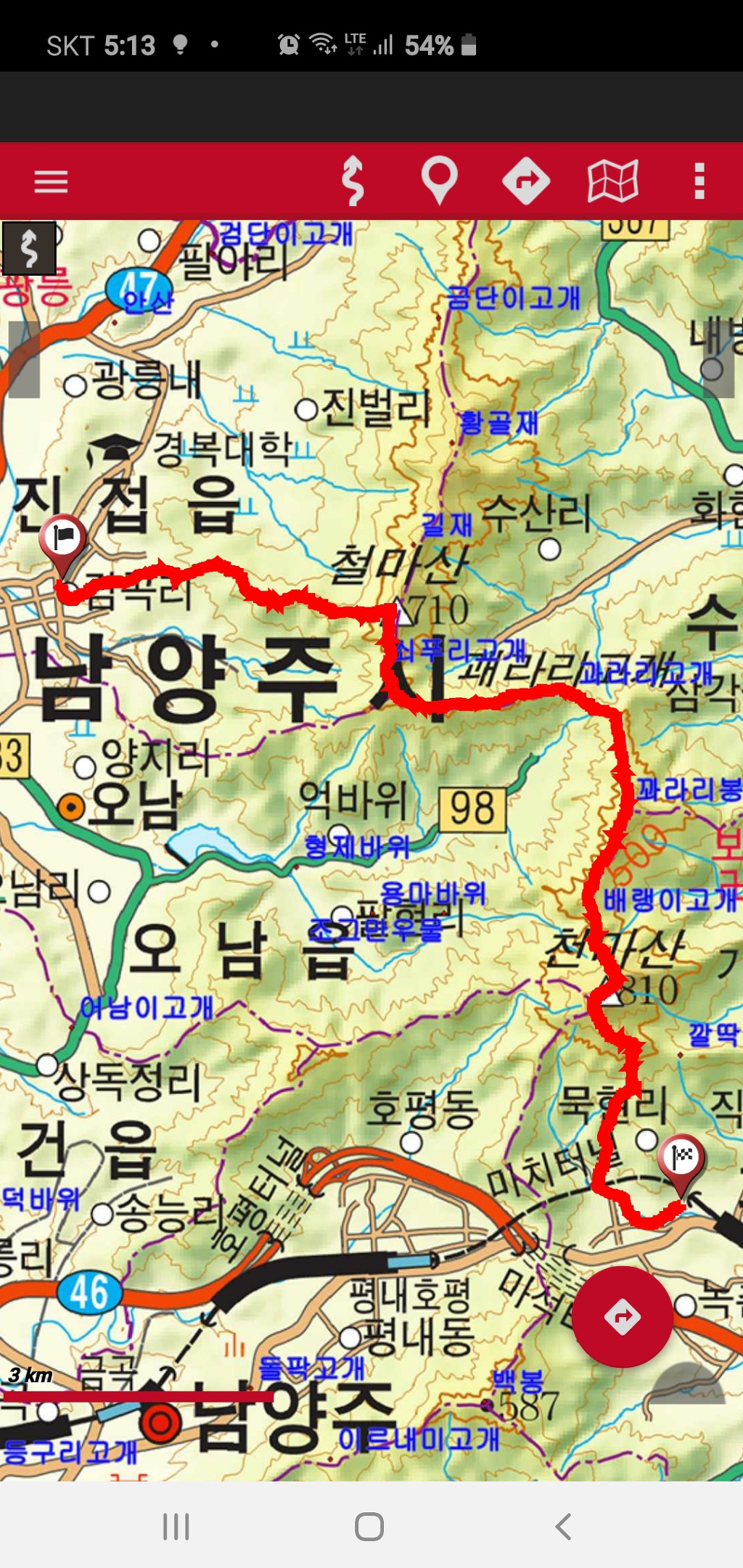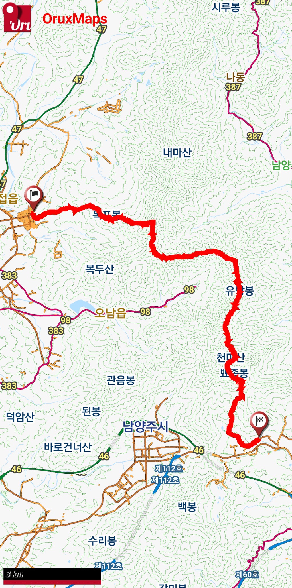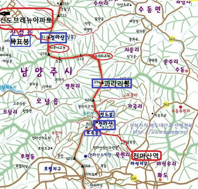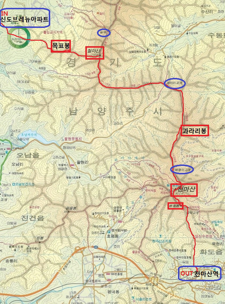 3. 산행코스 : 신도브레뉴아파트-진접의해참공원-목표봉-철마산(711)-과라리봉-천마산(820)-뾰족봉-천마산역