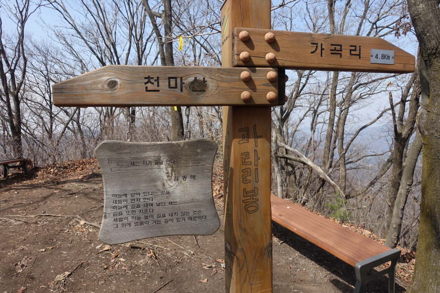 (14;10)가곡리갈림 이정표( 천마산2.4km/가곡리4.8km/철마산4.6km)입니다.