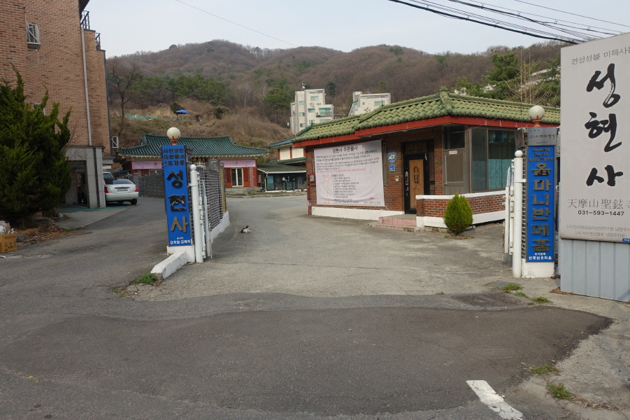 스틱접고 도로따라 좌측으로 가니(16;30) 성현사 절이고 로타리에서 좌측으로 도로따르니 (16;39)버스정류소 (천마초등학교-묵현1621-천마산역3번출구)를 지나 신호건너니 (16;40) 천마산역이다.[5.0km][72분]