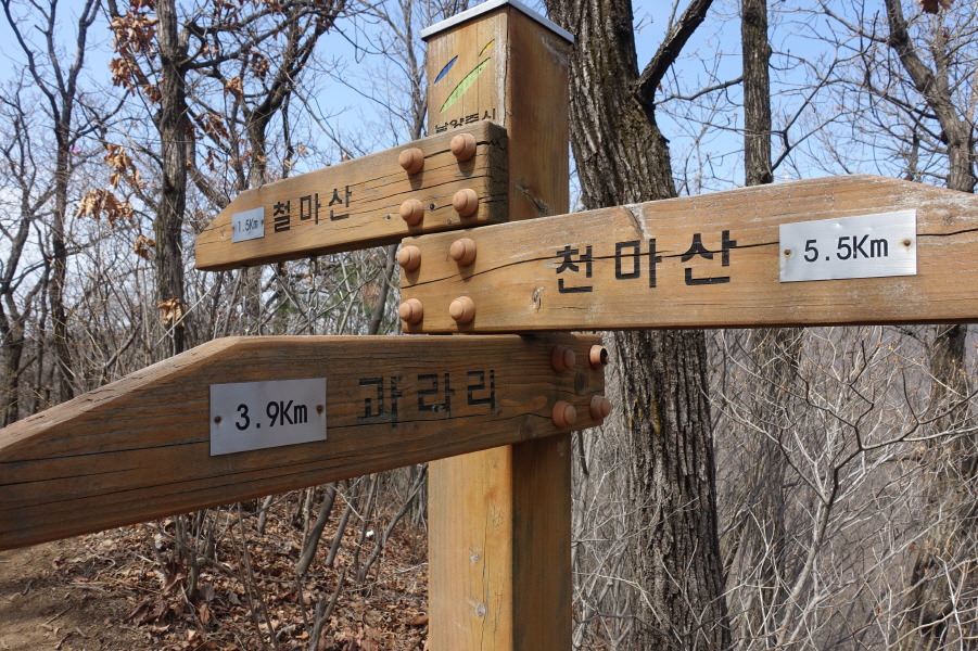 (12;43)과라리갈림이정표(천마산정상5.5km/과라리3.9km/철마산정상1.9km)