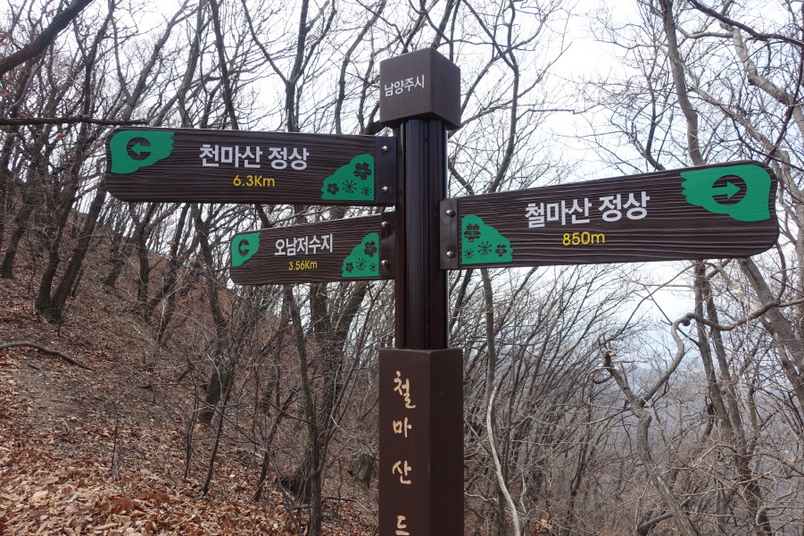 (12;28) 초당하산길 이정표(천마산정상6.4km/오남저수지3.64km/철마산정상760m)