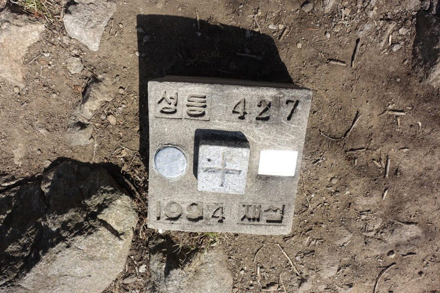 (12;13)바위들이 박힌 봉에 삼각점(성동427/1994재설)입니다.