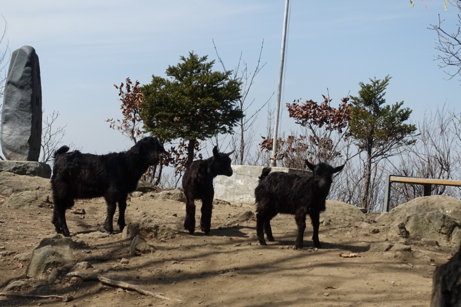 (11;55~12;08)[13분] 과일먹으면서 찬마산정상에서 휴식을 취하는데 고 진객들(염소3마리)이 나타납니다.