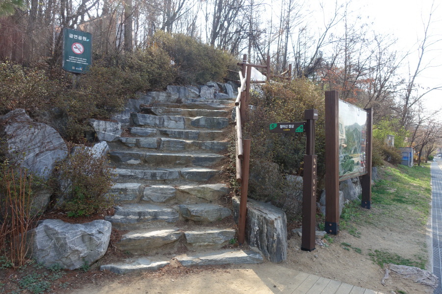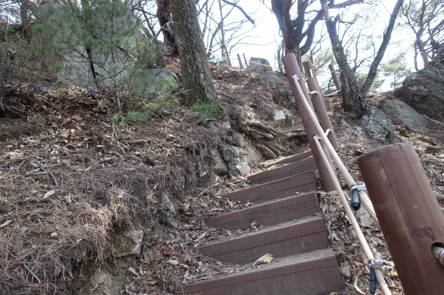 바로 계단을 올라 간다. 등로는 정비가 잘 되어있고,야자메트가 깔려서 산행하기가 편리하다.
