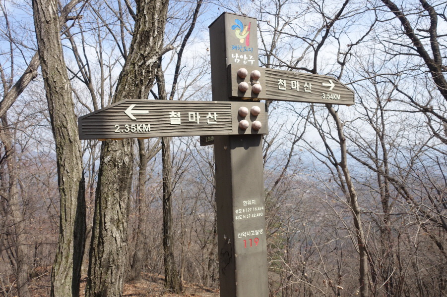 (15;33)이정표(천마산역2.88km/호평동방향/등산로입구3.16km/천마산140m)입니다.