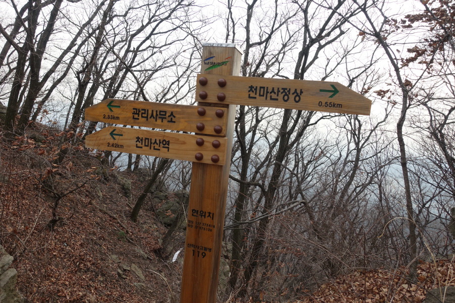 (15;44)이정표(천마산역2.42km/관리사무소2.33km/천마산정상0.56km)입니다.
