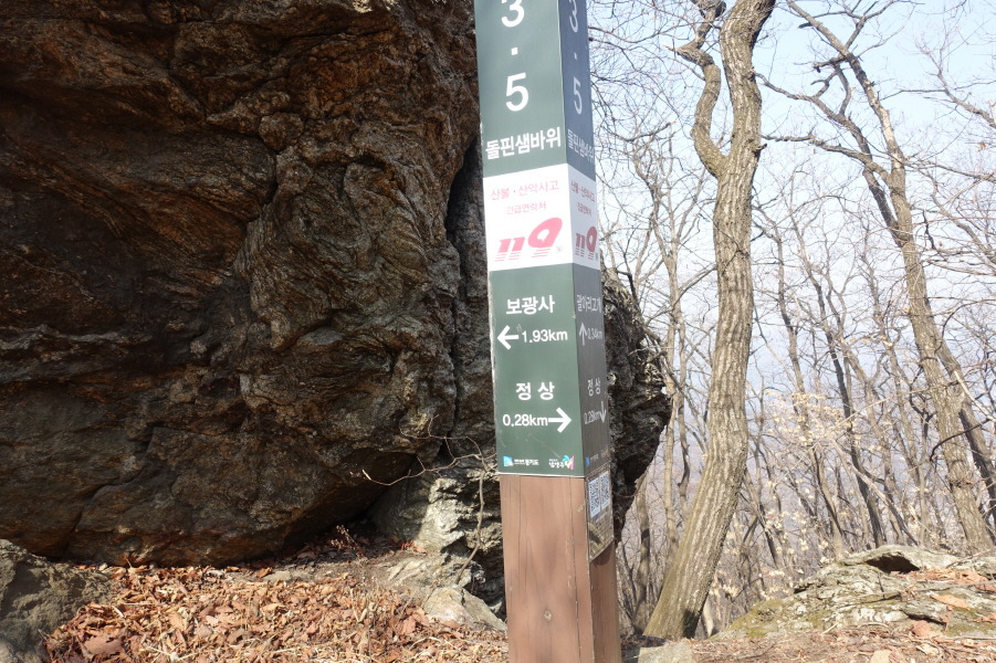 (15;05) 돌핀샘바위 119표지목(정상0.28km/보광사1.93km)
