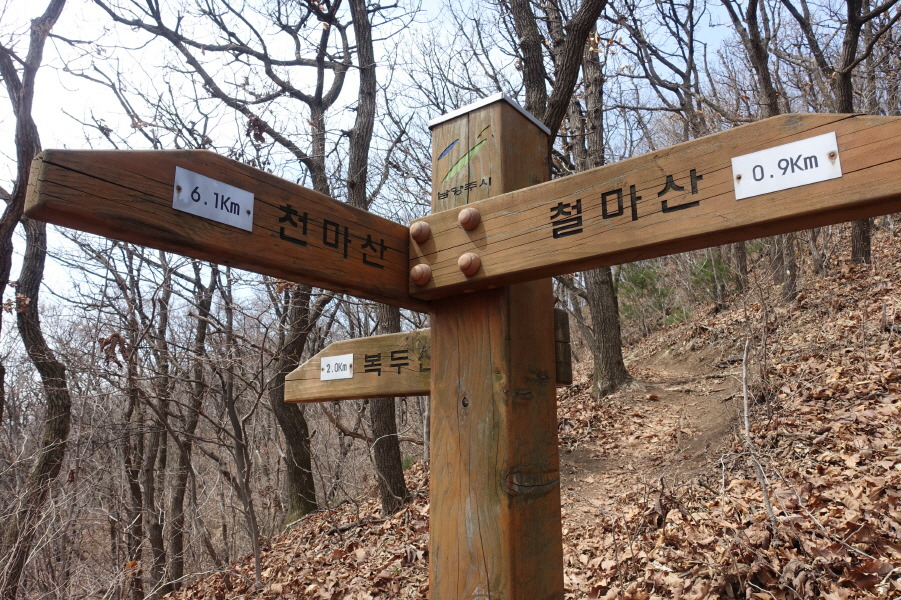 (12;33) 복두산 갈림이정표(천마산정상6.1km/복두산2.0km/철마산정상0.9km)입니다.