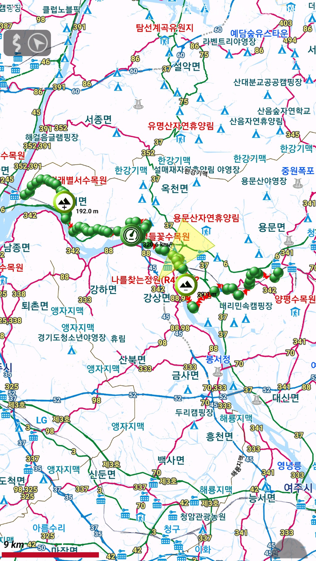 산행코스 : 양평역1번출구출발~양평군청~양평교~갈산공원~현덕교~신내대명리조트