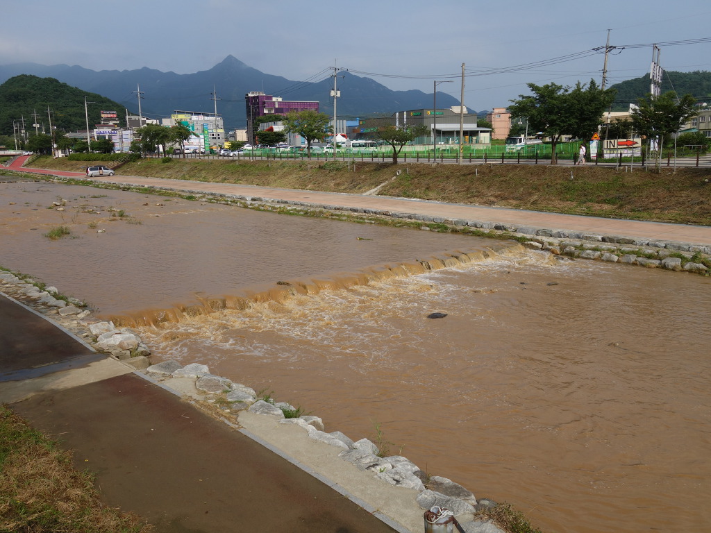(옥천면체육시설앞 하천범람으로 우회/물안개공원공사중으로 우회)