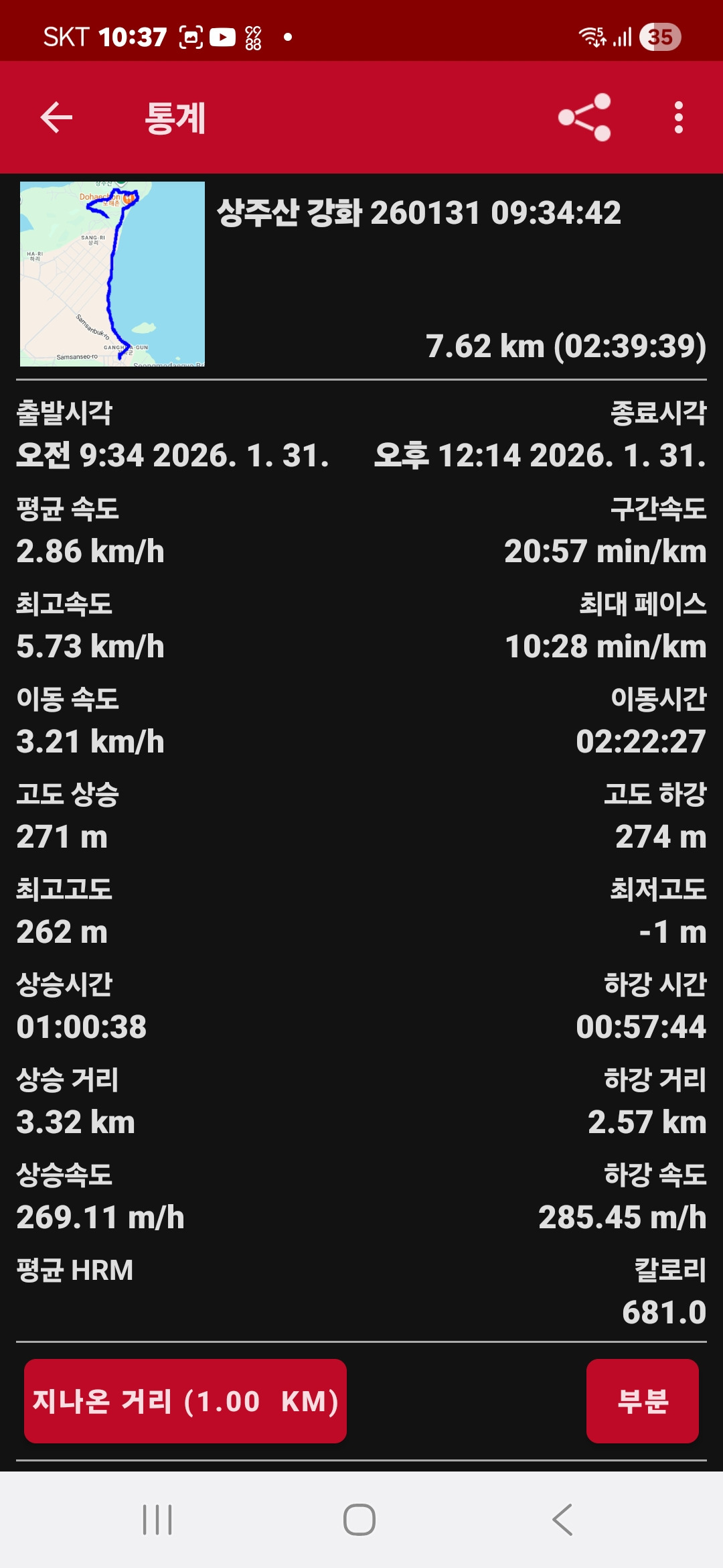 ◈ 거리 및 시간:7.62km/2시간 39분