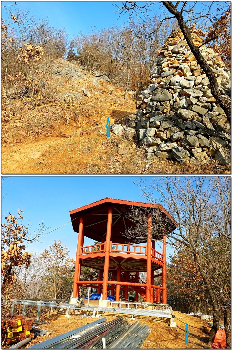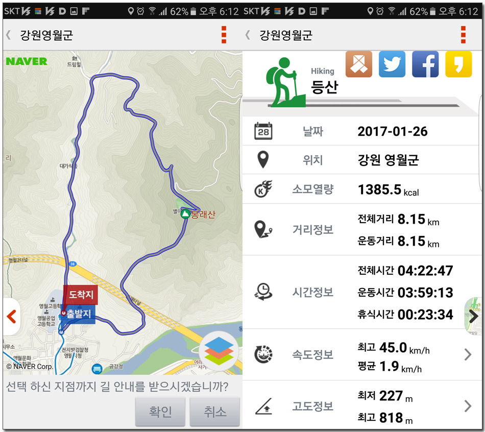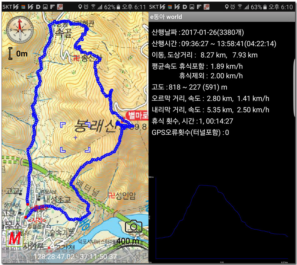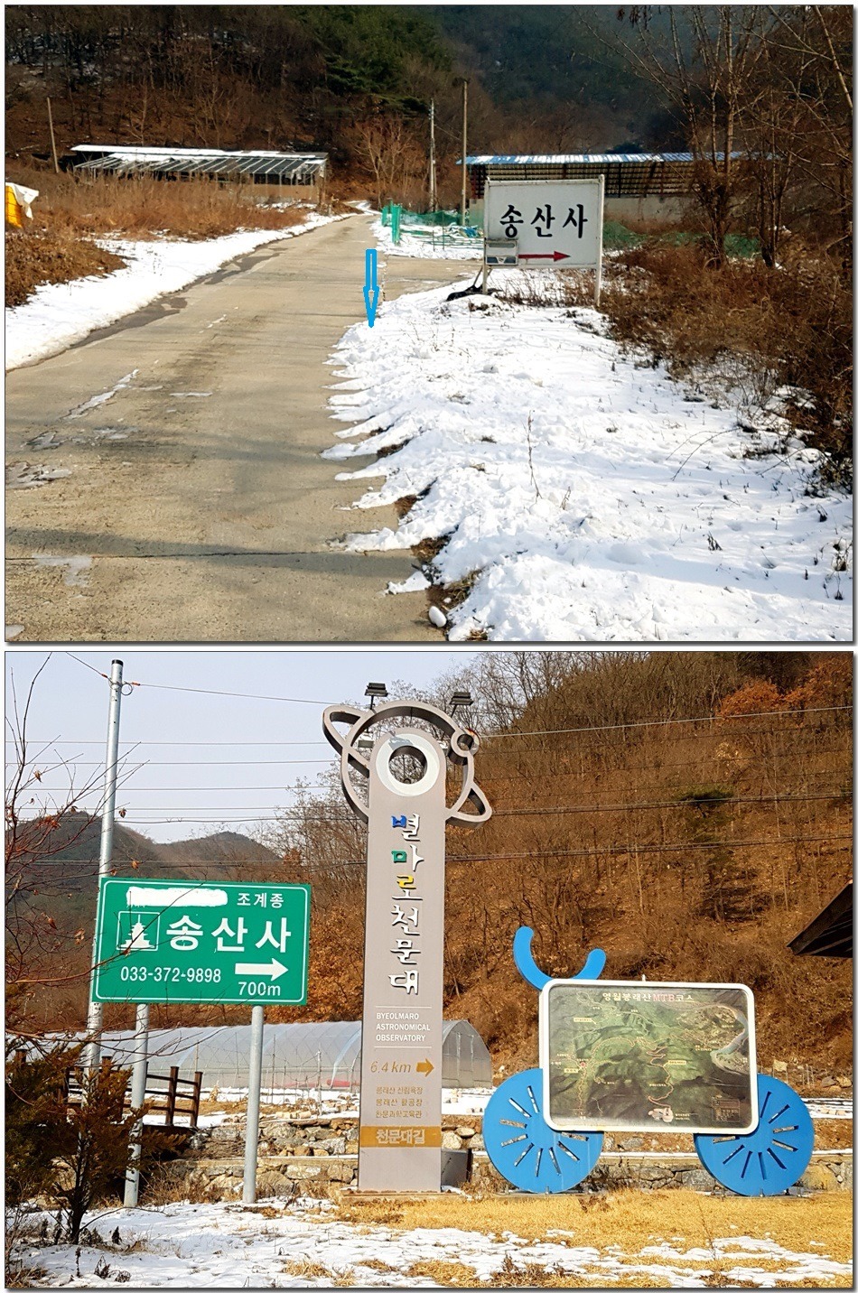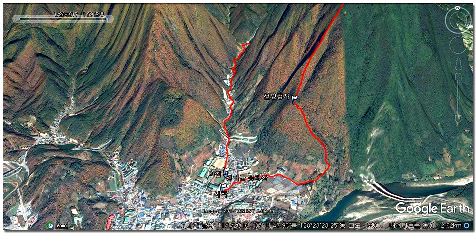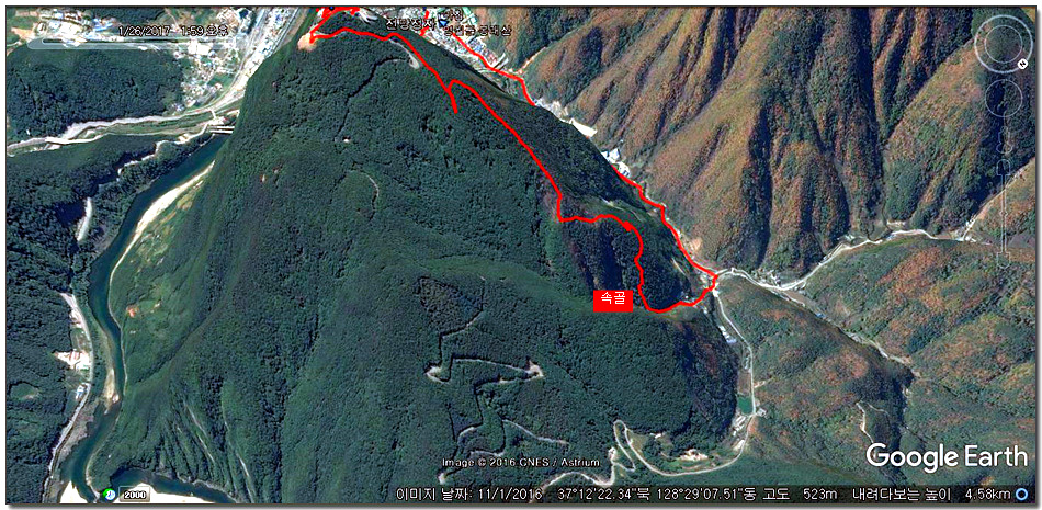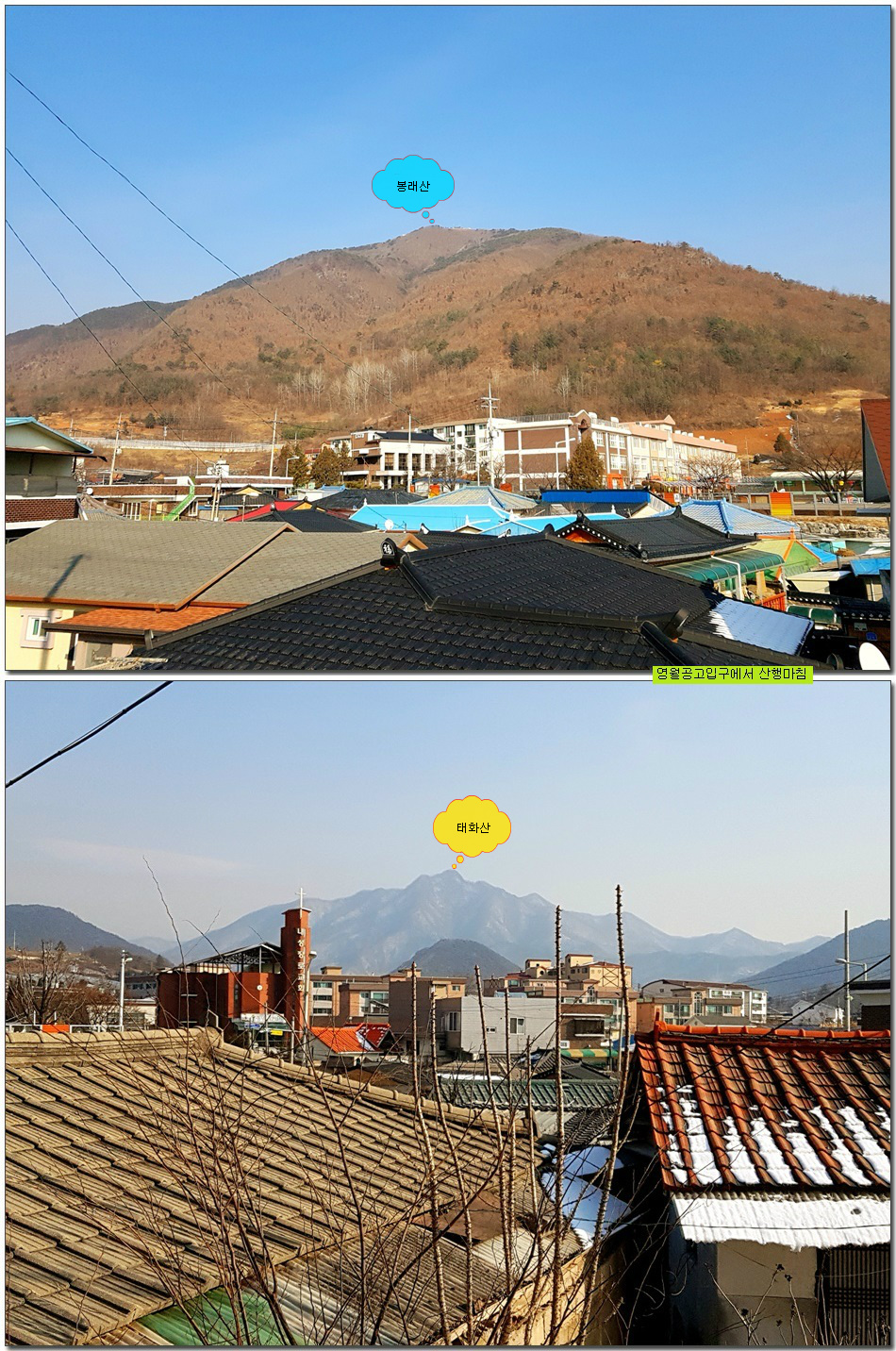 2017.01.26.목요일(맑음)(바람잔잔함) 산행시작~~09시 35분 [영월공고입구 시작] 산행마침~~13시 57분 [영월공고입구 마침] 산행시간~~04시간22분[이동거리 08.05km][함께한사람=뚜벅이 새마포산악회이용] [이시간은 답사 사진촬영과 휴식시간 포함이오니 개인의 산행 실력으로 달라질수 있습니다.]제 1252회 각산 1376[山]봉 답사.~~산행 코스~~ *영월공고입구 시작[09시35분]=전망대(10시18분)=봉래산(11시29분)=영흥3리(속골)(13시21분)=영월공고입구(13시57분)마침*♣봉래산(798.5m)속골 능선걷기♣ ♣봉래산(798.5m)별마로천문대은? 봉래산은 영월읍 영월의 주산으로 시가지 동쪽에 위치하며, 멀리 가리왕산에서 발원하는 물줄기가 천렵터로 유명한 어라연계곡을 거쳐 영월에 이르러 동강을 이루며 산밑을 흐른다. 강변에는 금강정과 낙화암이라는 정자가 있다. 낙화암은 단종이 죽은 뒤 그를 모시던 시녀들이 동강 절벽에서 꽃잎처럼 떨어져 죽었다는 전설이 전한다. 정상에는 별마로 천문대와 페러글라이더 활공장이 있어 많은 관객들이 찾는 산으로 예로부터 봉래채운(蓬萊彩雲)이라하여 영월팔 경중에 하나이기도 하다.봉래산(蓬萊山 799.8m)은 강원도 영월군 영월읍의 동북간을 가로지르는 영월의 주산으로 정상에는 별마로 천문대와 패러글라이더 활공장이 있다. 봉래산 정상에서 서쪽으로 영월읍 시내를 보면 평창과 정선을 거쳐 흘러온 동강과 주천에서 흘러온 서강이 영월에서 합수되어 단양과 충주를 거쳐 남한강에 이른다. ♣성삼문의 시조에 나오는 봉래산이다. 이몸이 죽어가서 무엇이 될꼬하니 봉래산 제일봉에 낙락장송 되어이셔 백설이 만건곤 할때 독야청청하리라아래 지도을 클릭하시면 크게 확인할수 있읍니다.