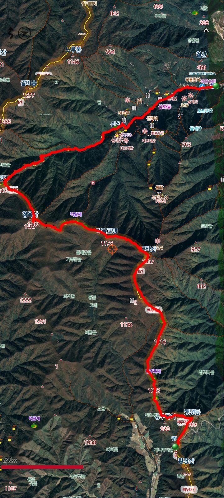 3. 코 스 : 댓재-햇댓등-통골재-두타산-박달재-청옥산-청옥산샘터확인-연칠성령-문간재-학소대-삼화사-무릉계곡-주차장