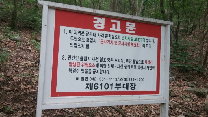 그런데 올라보니 이곳이 군사지역이라 출입통제 구역이라는 경고문이 살벌하게 여러곳에 있습니다.