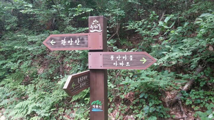 조금지나면 품안마을 아파트에서 올라오는 샛길 갈림길이 나오며 이정표가 있네요.