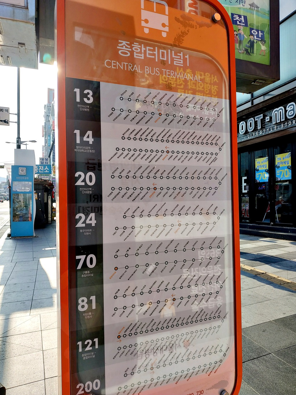 갈 때 : 천안터미널 길 건너편 종합터미널1(버스정류소)에서 24번 혹은 81번 (각원사행) 버스에 승차 – 안서대림2차아파트(버스정류장)에서 하차 후 산행 시작.