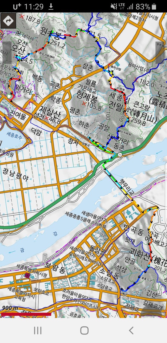 3. 산행코스 : 세종소방서~성제봉~오산~원수산~형제봉~무궁화테마공원~전월산~숭모각~햇무리교~괴화산~KDI
