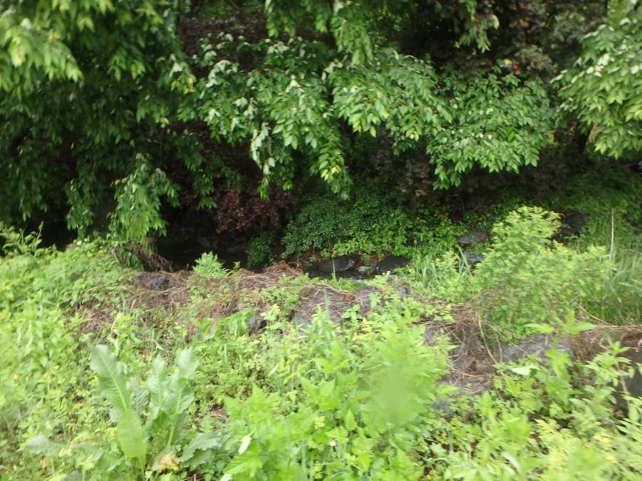 우측으로 구도로 따라 (12;13)주정소교를 건너 (12;13)아치형‘힐링용출수전광판’탑 즈음에서 좌측 풀이 웃자란 임도에 붙는다. 임도 따라 오르니 (12;15)넓은 묵밭이고 묵밭 끝자락에 가야할 능선이다. 초원의 묵밭을 통과하여 전면의 능선에 붙는다. 능선에 붙으니 길이 양호하다. 능선길따라 좌측으로 조금 이동하니 (12;21)정자를 만나고 조망이 터지고 좌측으로 마을 회관과 합천이씨 재실이 내려다 보인다.