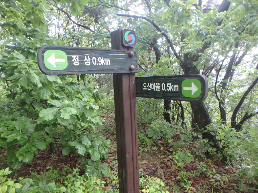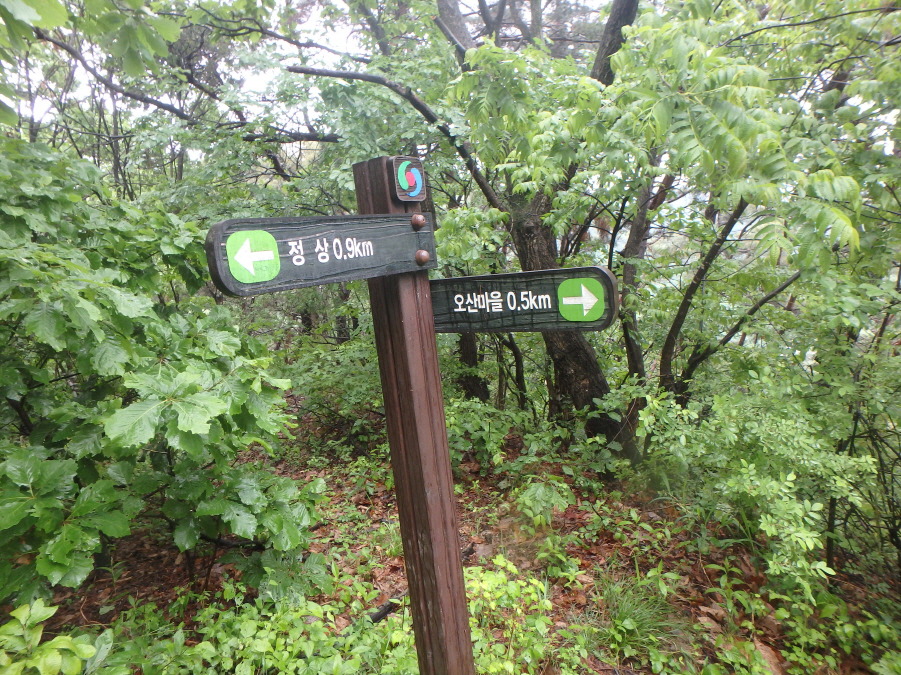 (12;33)이정표(정상0.9km/오산마을0.5km)에서 좌향 정상방향 돌계단을 오릅니다.