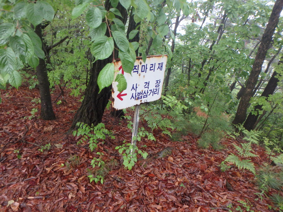 10;59 북봉정상 또다른 이정표(직마리재/사격장. 사법삼거리)입니다.